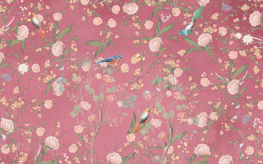Pembe Zemin'li Soft Çiçekler ve Kuşlar Duvar Kağıdı