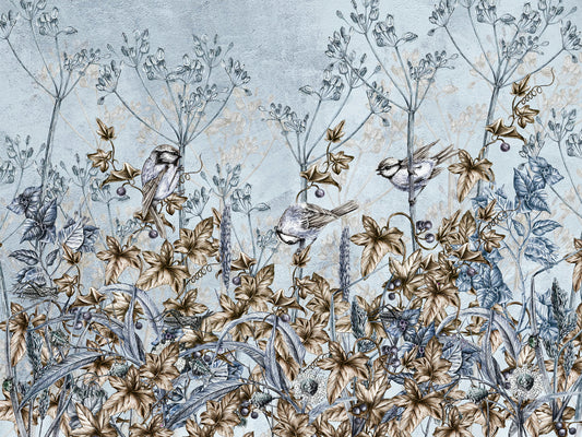 Mavi ve Gold Tonlarında Kuşlar Duvar Kağıdı