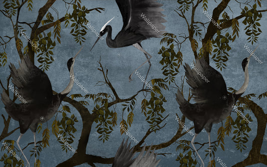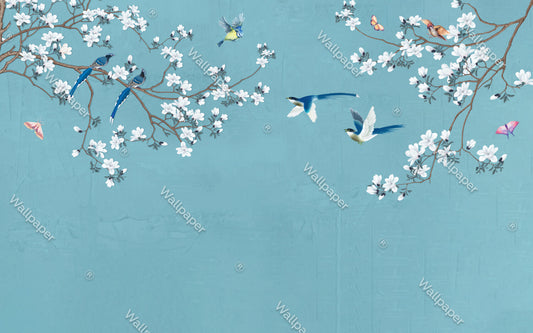 Ağaç ve Kuş Özel Tasarım Duvar Kağıdı