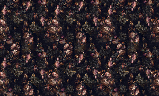Koyu Çiçekler ve Kuşlar Duvar Kağıdı
