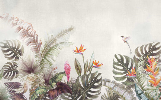 Tropikal yapraklar ve Starliçe Çiçeği Duvar Kağıdı