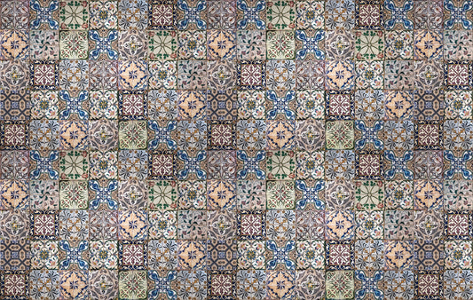 Vintage Fayans Duvar Görünümünde Duvar Kağıdı