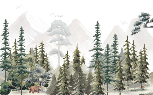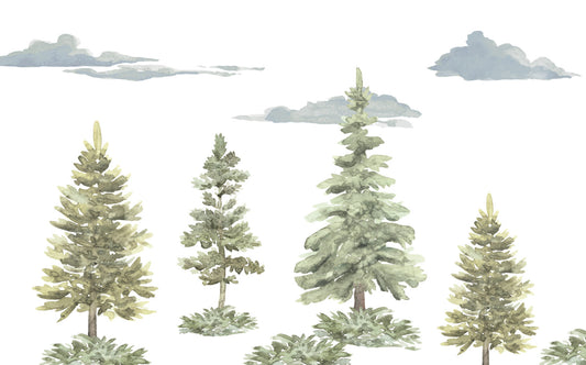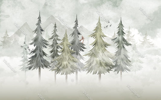 Çam Ağaçlı Sulu Boya Efektli Duvar Kağıdı