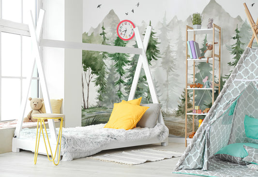 Orman Manzaralı Çocuk Odası 3D Duvar Kağıdı