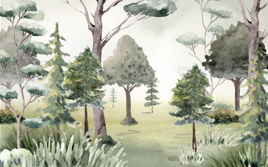 Ormandaki Ağaçlar Suluboya Efektli Duvar Kağıdı