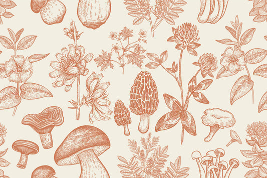 Soft Turuncu Tonlarında Mantarlar ve Bitkiler Duvar Kağıdı