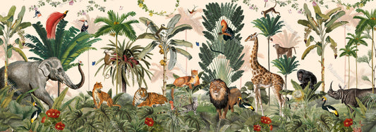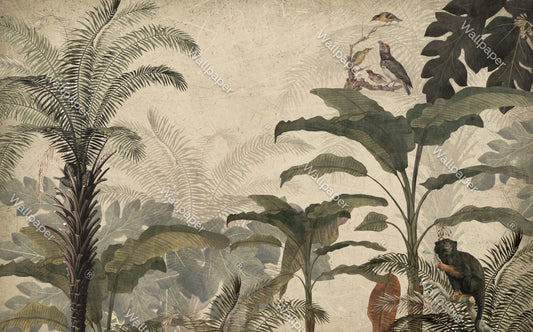 Tropikal Ormanda Hayvanlar Alemi Bej Zemin Duvar Kağıdı
