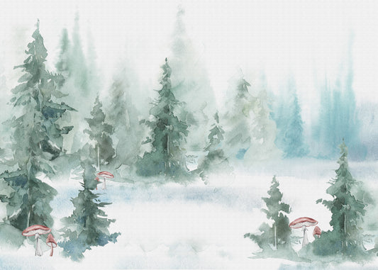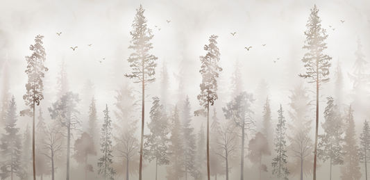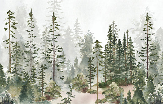 Sulu Boya Sisli Çam Ormanı Duvar Kağıdı