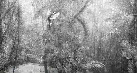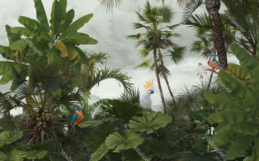 Karakalem Puslu Tropikal Ormanda Kuş Duvar Kağıdı