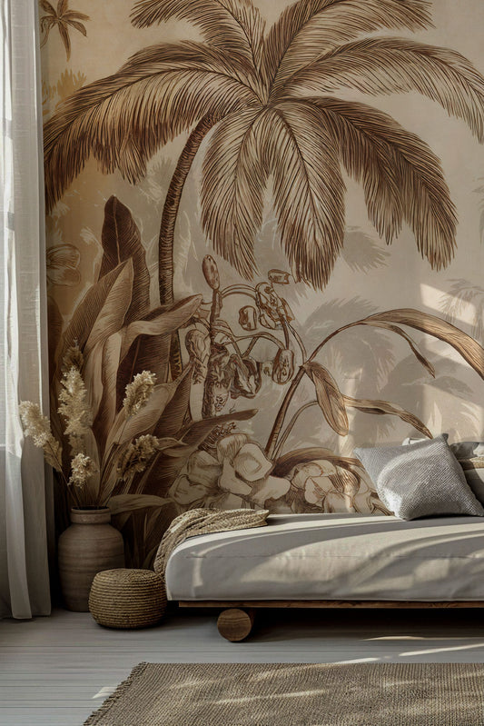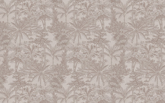 Çizgisel Bej Tonunda Tropikal Desen Duvar Kağıdı