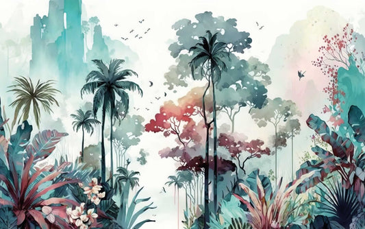 Sulu Boya Tropikal Orman Duvar Kağıdı