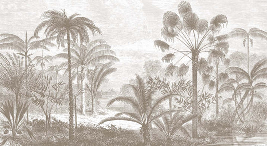 Sepya Tonlarında Çizgisel Tropikal Orman Duvar Kağıdı