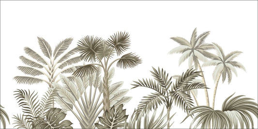 Siyah Beyaz Tropikal Ağaçlı 3D Duvar Kağıdı
