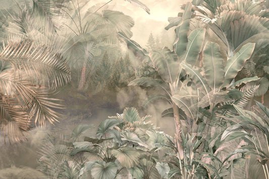 Ormandaki Tropikal Ağaçlı 3D Duvar Kağıdı