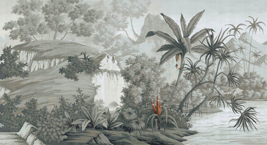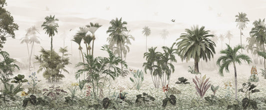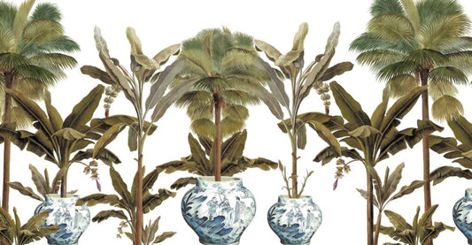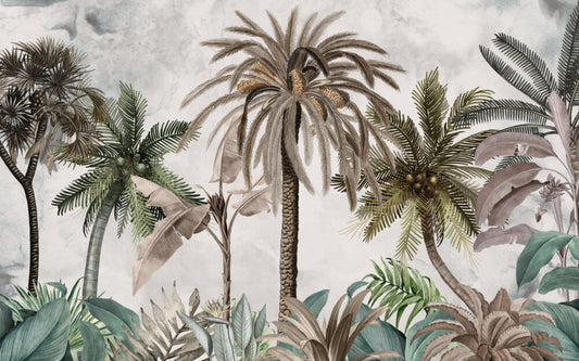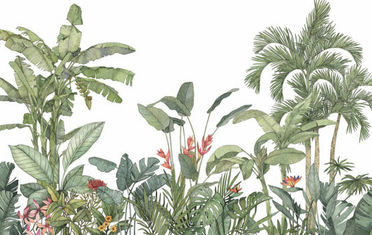 Büyük Ağaçlı Tropikal Desenli Duvar Kağıdı