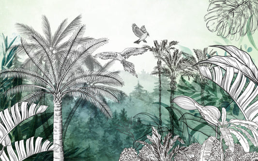 Yeşil Renkli Tropikal Ağaçlı 3D Duvar Kağıdı
