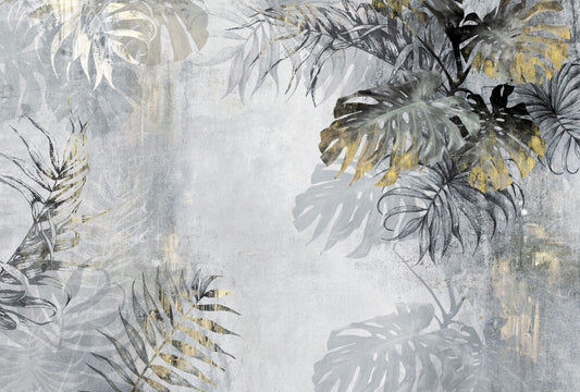 Gold Renginde Tropikal Yapraklı Duvar Kağıdı