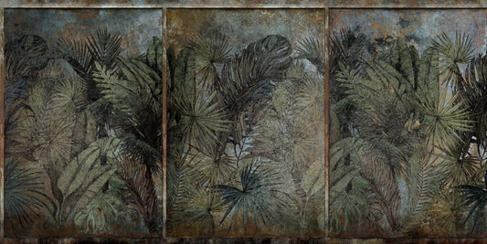 Eskitmeli Tropikal Yaprak Desenli 3D Duvar Kağıdı