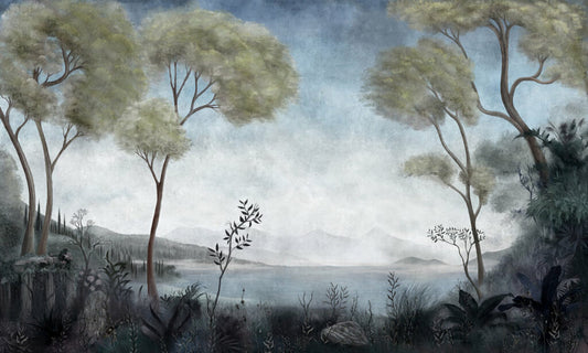 Deniz ve Ağaç Desenli Tropikal Duvar Kağıdı