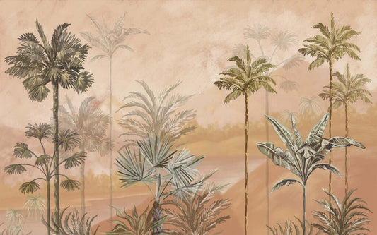 Bej Tonlarda Yüksek Palmiye Ağaç Desenli Tropikal Duvar Kağıdı