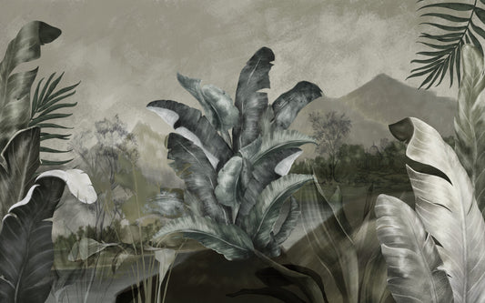 Koyu Tonlarda Manzaralı Tropikal Yapraklar Duvar Kağıdı