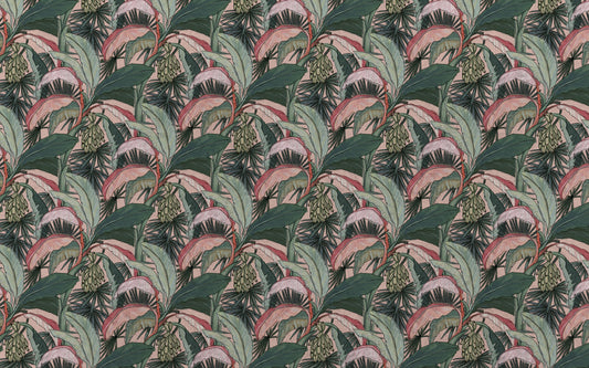 3D Geniş Yapraklı Çok Bitkili Pembe Tropikal Duvar Kağıdı