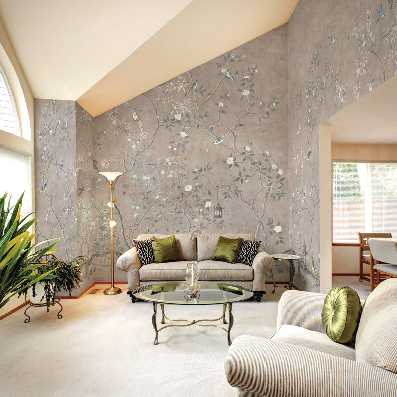 3D Çiçek Dallı Kuşlu Vizon Renk Duvar Kağıdı Duvar Kağıdı Ürün Bilgisi