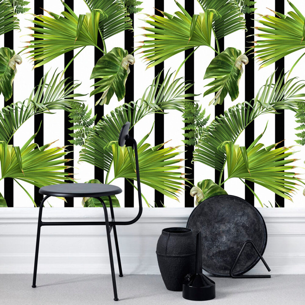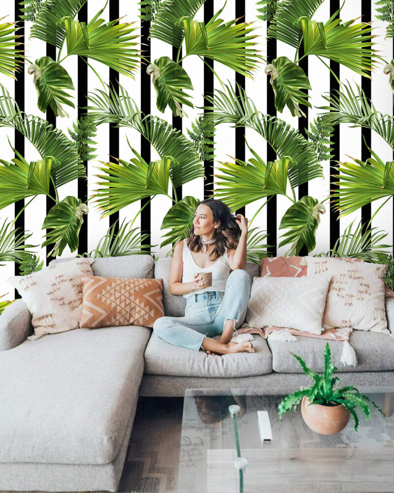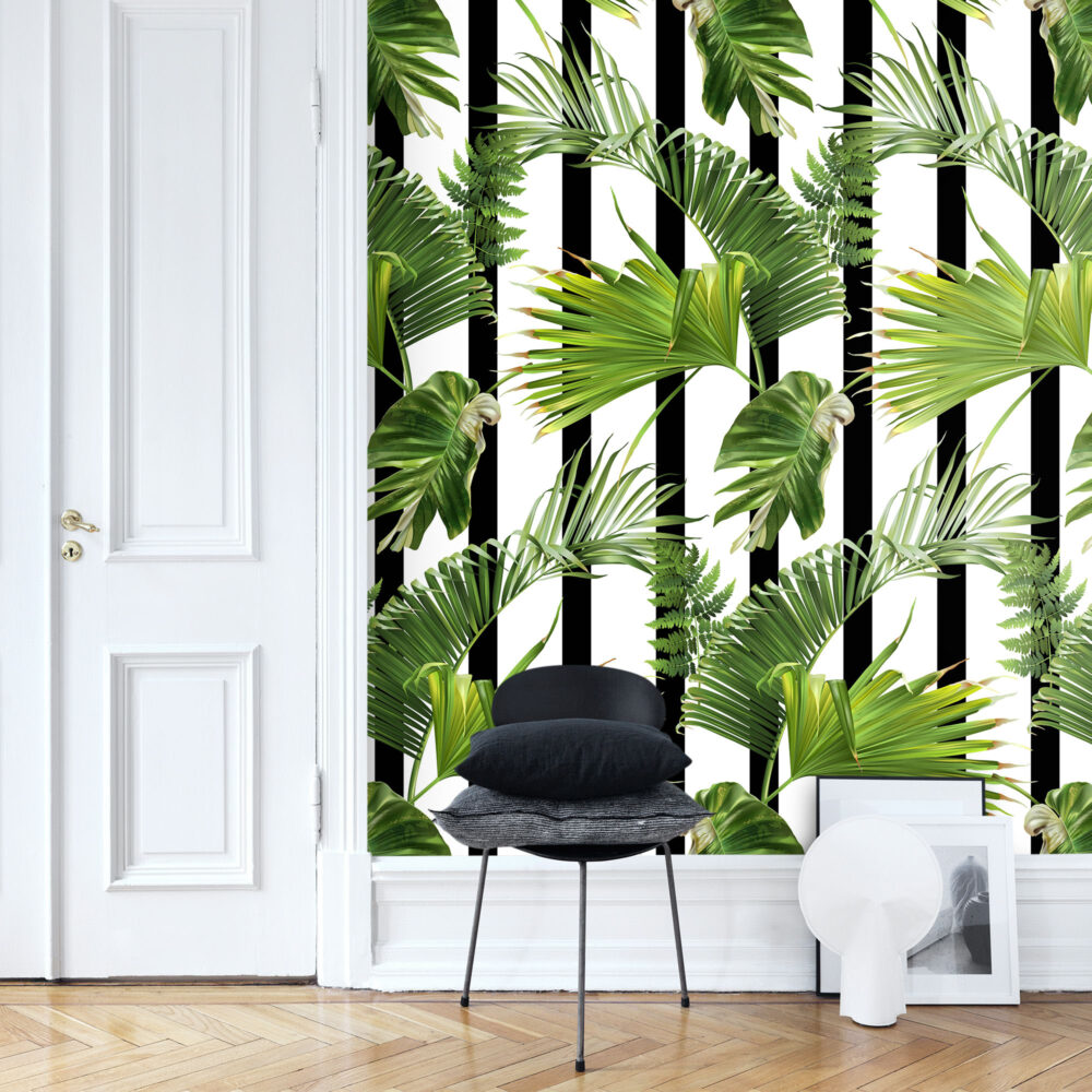 3D Çizgiler ve Tropikal Yapraklar Duvar Kağıdı | Duvar Kağıdı Marketi Duvar Kağıdı Ürün Bilgisi