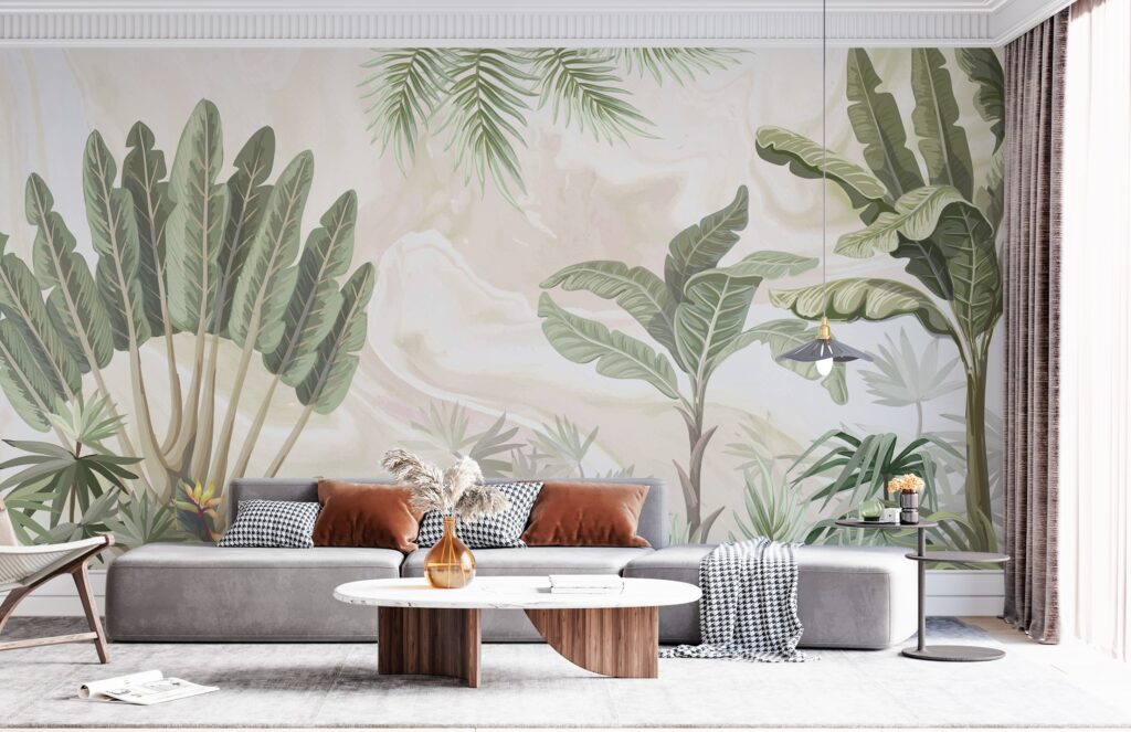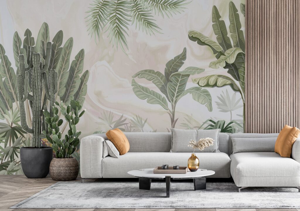 3D Çok Çeşit Ağaç ve Bitki Desenli Tropikal Duvar Kağıdı üretimi, uygulanmasını isteyeceğiniz boyut ve konumuna uygun olarak talepleriniz doğrultusunda size özel imal edilir.