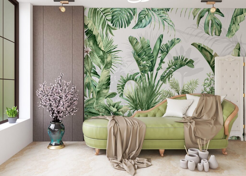 3D Çok Çeşit Yeşil Bitki Desenli Tropikal Duvar Kağıdı üretimi, uygulanmasını isteyeceğiniz boyut ve konumuna uygun olarak talepleriniz doğrultusunda size özel imal edilir.
