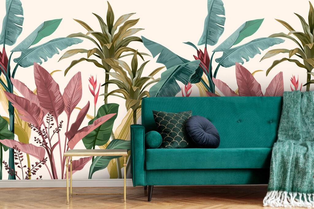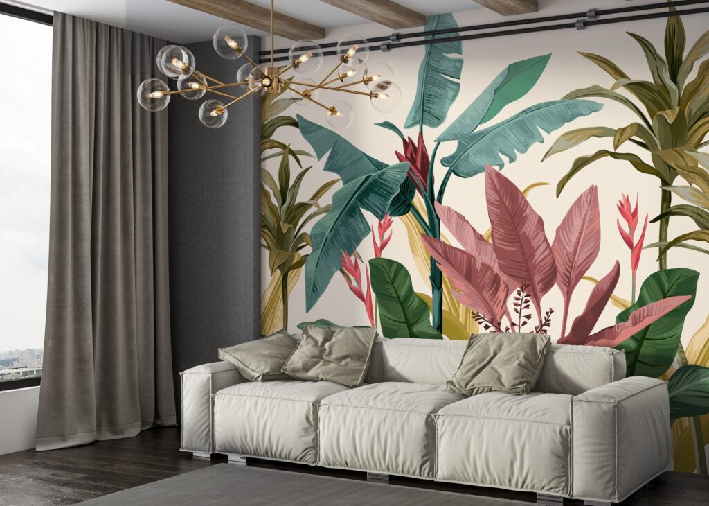3D Farklı Renkte Bitki ve Ağaç Desenli Tropikal Duvar Kağıdı üretimi, uygulanmasını isteyeceğiniz boyut ve konumuna uygun olarak talepleriniz doğrultusunda size özel imal edilir.