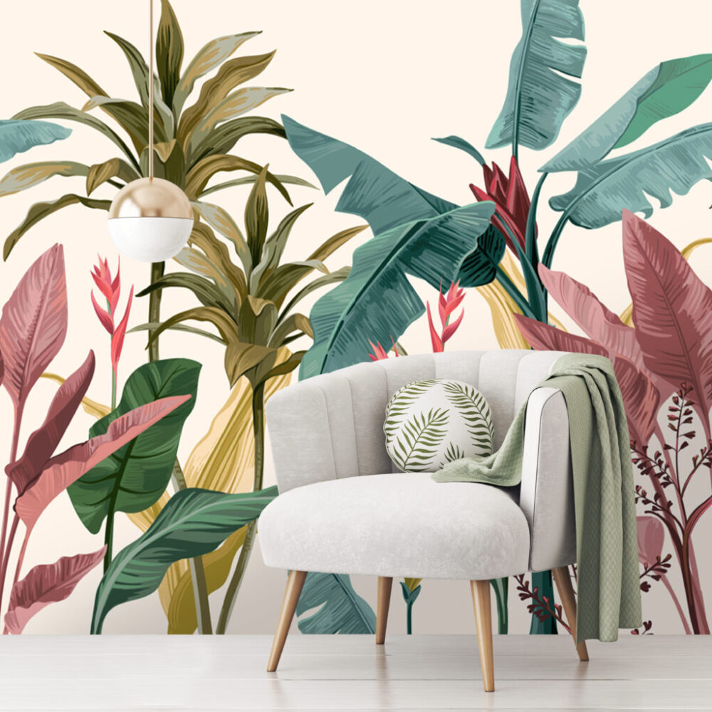 3D Farklı Renkte Bitki ve Ağaç Desenli Tropikal Duvar Kağıdı Duvar Kağıdı Ürün Bilgisi