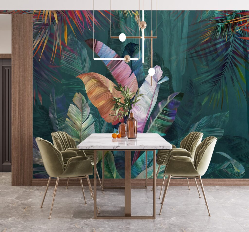 3D Geniş Yapraklı Çok Bitkili Tropikal Duvar Kağıdı üretimi, uygulanmasını isteyeceğiniz boyut ve konumuna uygun olarak talepleriniz doğrultusunda size özel imal edilir.