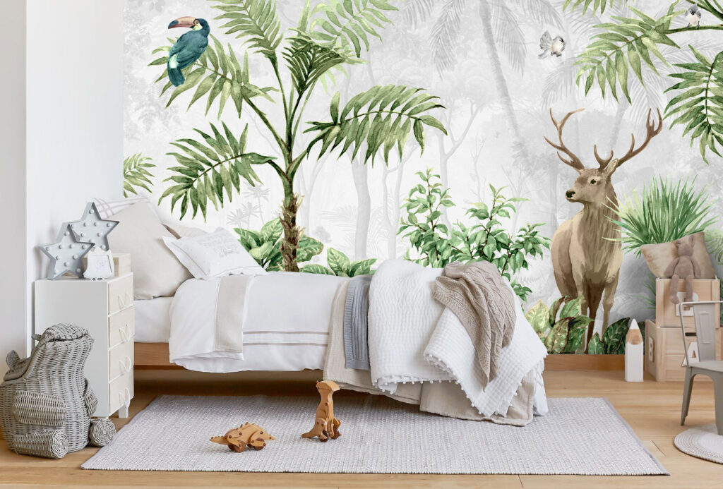 3D Geyik ve Ağaç Desenli Tropikal Duvar Kağıdı üretimi, uygulanmasını isteyeceğiniz boyut ve konumuna uygun olarak talepleriniz doğrultusunda size özel imal edilir.