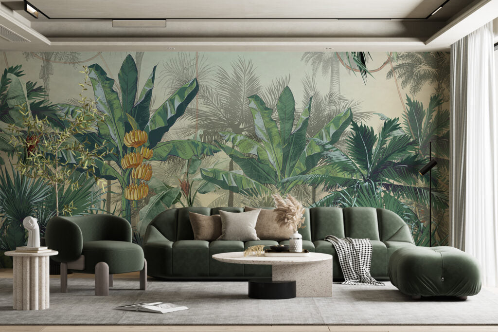 3D Muz Ağaçlı Tropikal Duvar Kağıdı