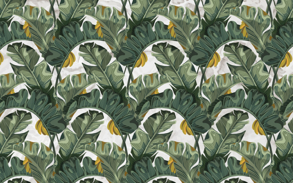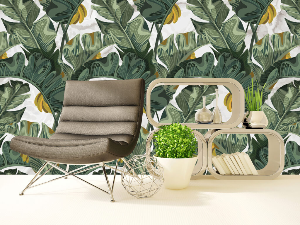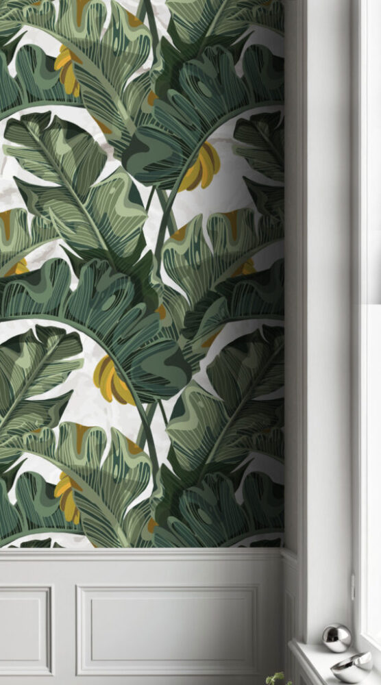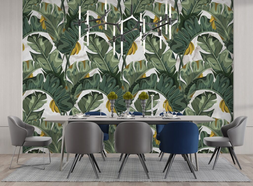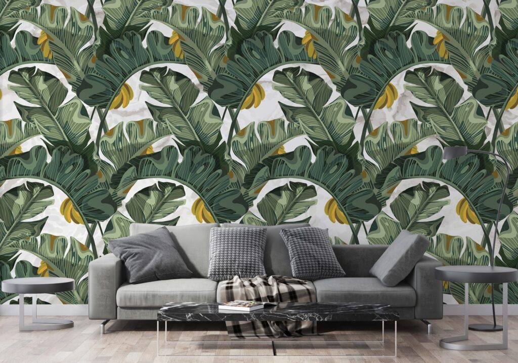 3D Muz Yaprağı Desenli Tropikal Duvar Kağıdı