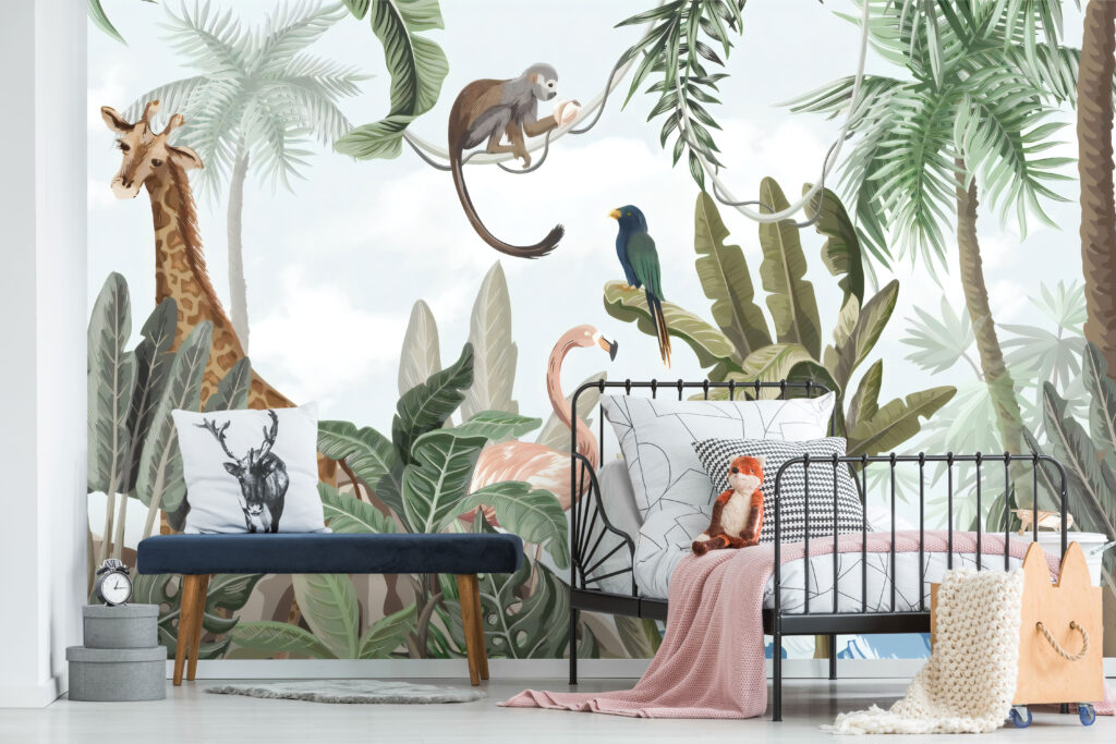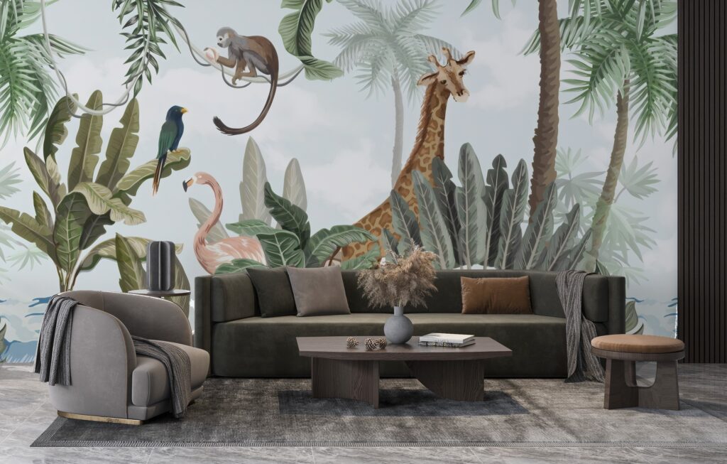 3D Zürafa ve Orman Desenli Tropikal Duvar Kağıdı Duvar Kağıdı Ürün Bilgisi