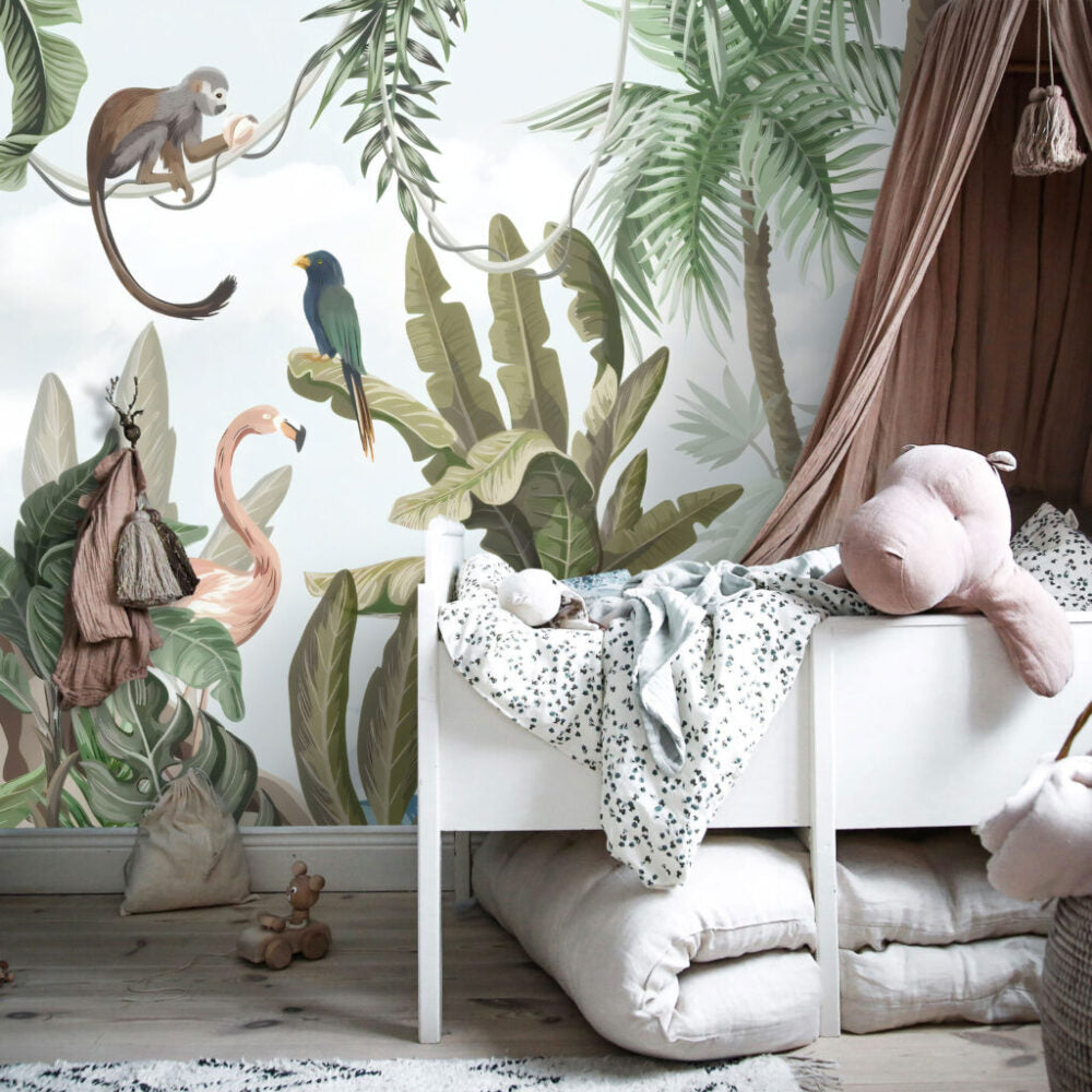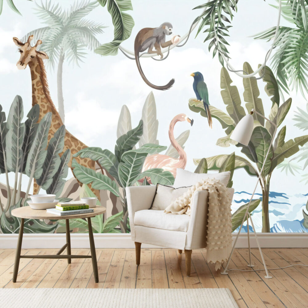 3D Zürafa ve Orman Desenli Tropikal Duvar Kağıdı üretimi, uygulanmasını isteyeceğiniz boyut ve konumuna uygun olarak talepleriniz doğrultusunda size özel imal edilir.