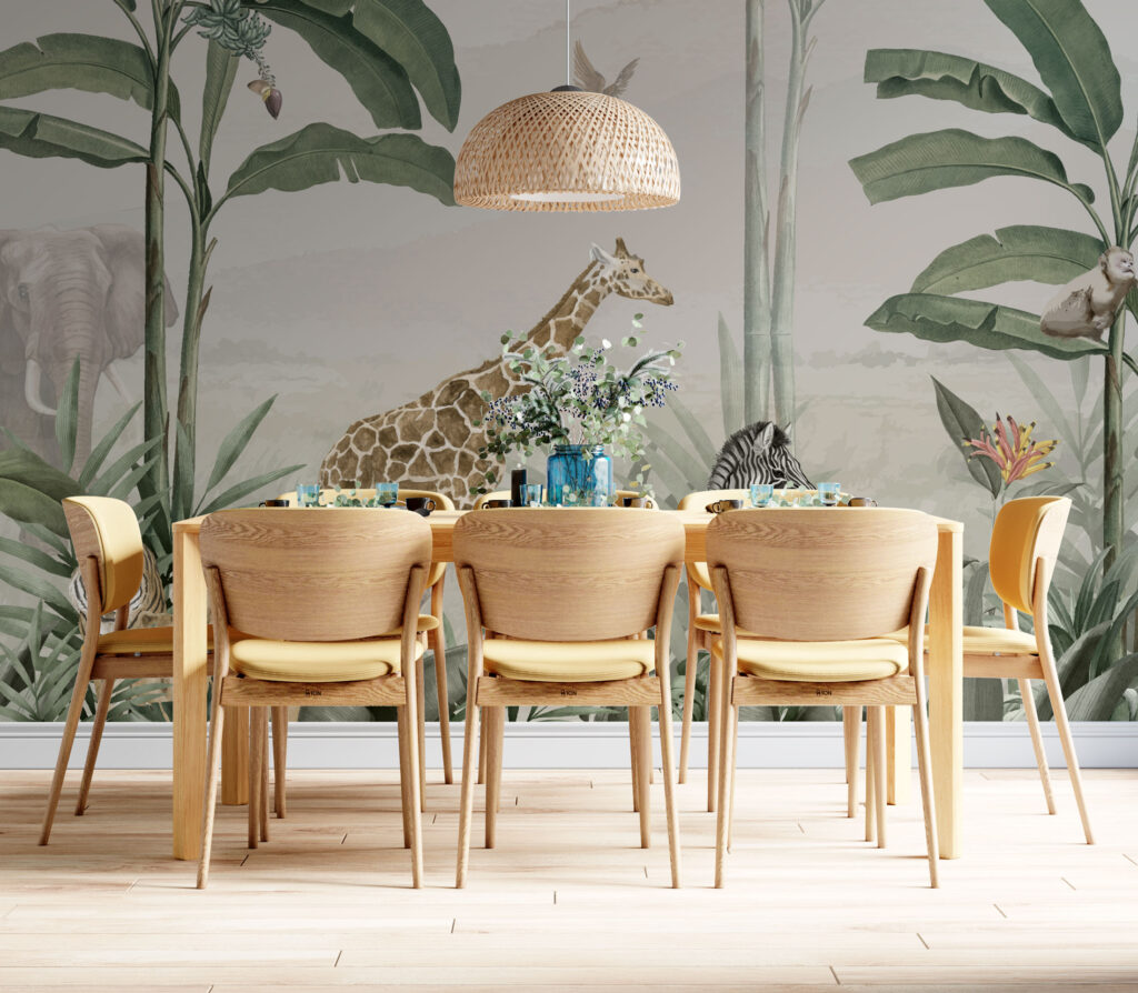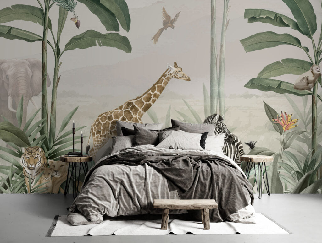 3D Zürafa ve Zebra Desenli Tropikal Duvar Kağıdı üretimi, uygulanmasını isteyeceğiniz boyut ve konumuna uygun olarak talepleriniz doğrultusunda size özel imal edilir.