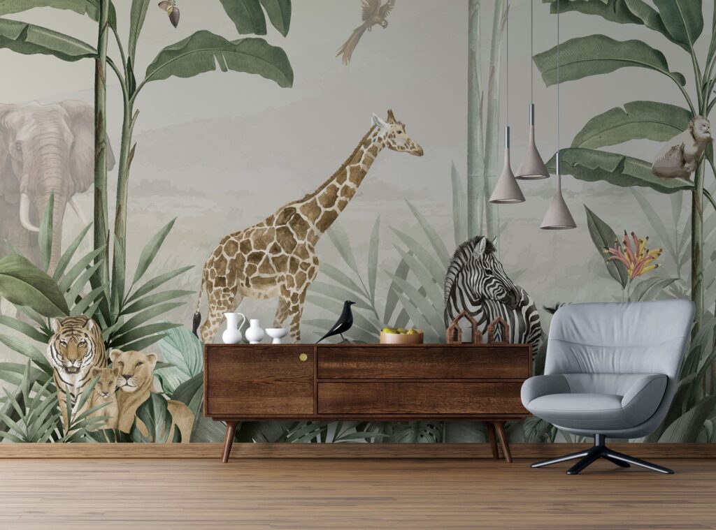 3D Zürafa ve Zebra Desenli Tropikal Duvar Kağıdı Duvar Kağıdı Ürün Bilgisi