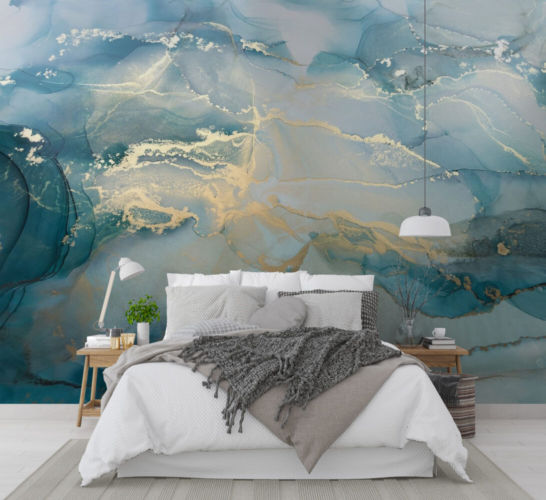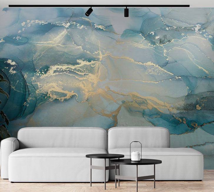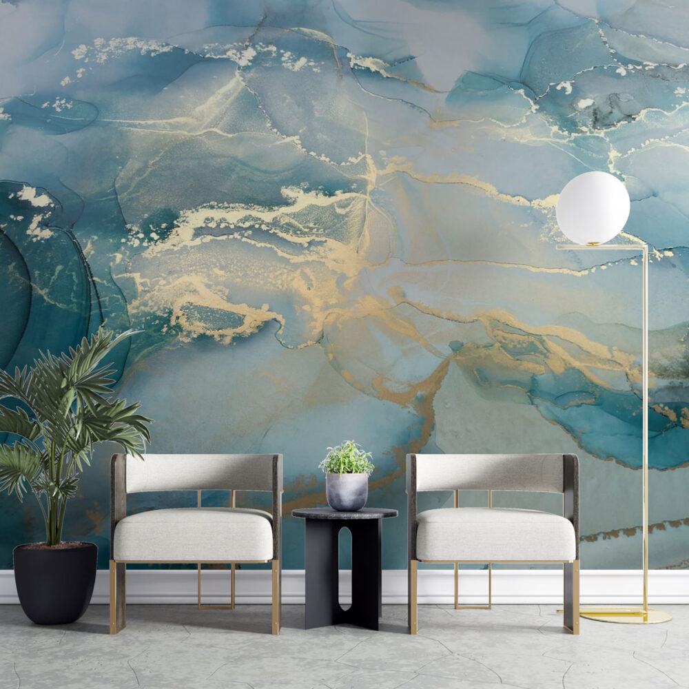 Açık Mavi ve Altın Detaylı Mermer Deseni Duvar Kağıdı | Duvar Kağıdı Marketi Duvar Kağıdı Ürün Bilgisi
