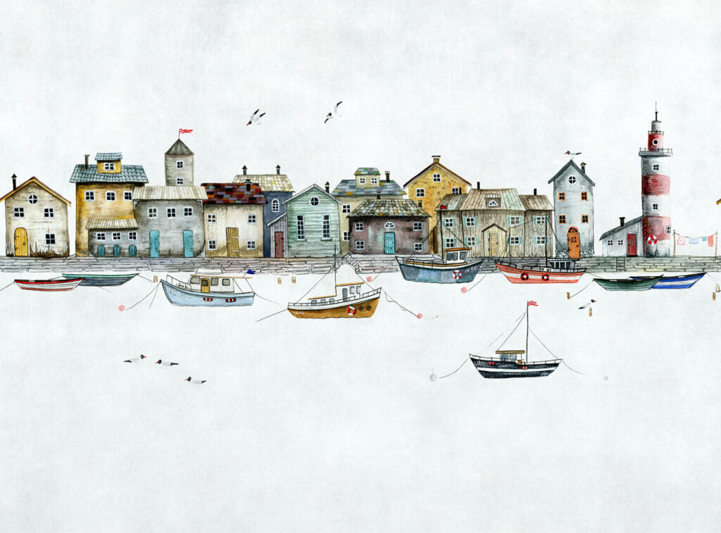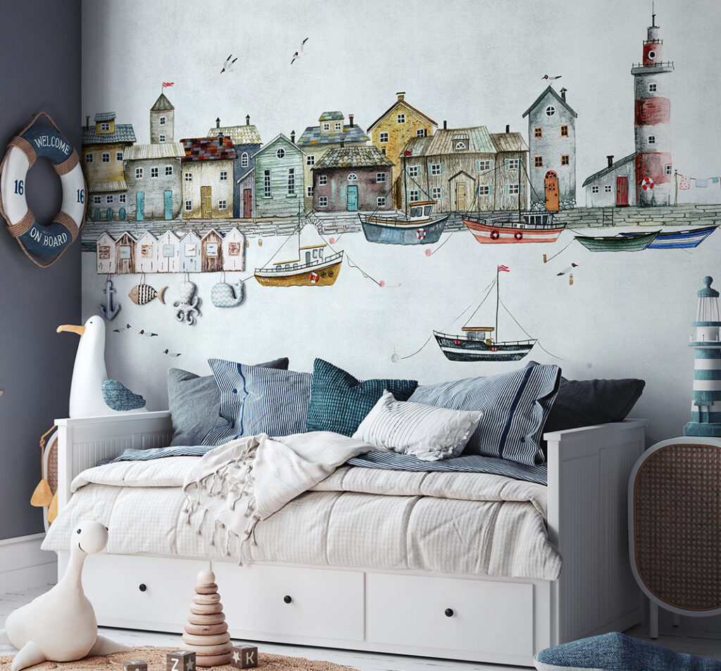 Açık Tonlar'da Küçük Evler Denizci Konseptinde 3D Duvar Kağıdı | Duvar Kağıdı Marketi Duvar Kağıdı Ürün Bilgisi