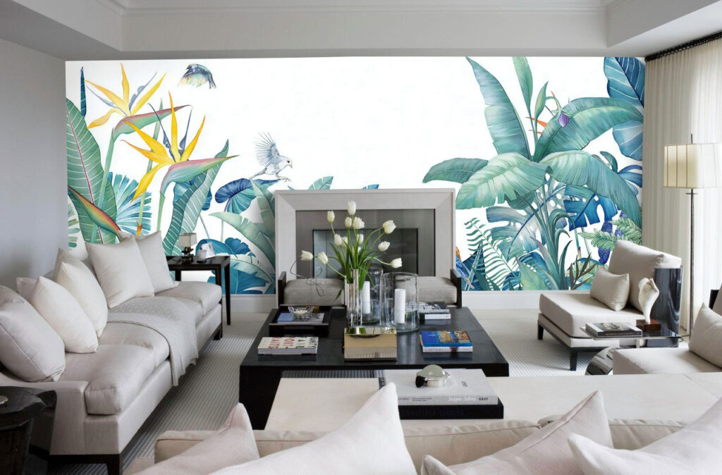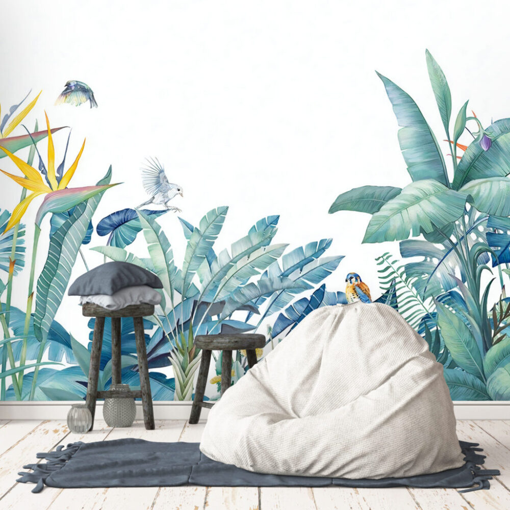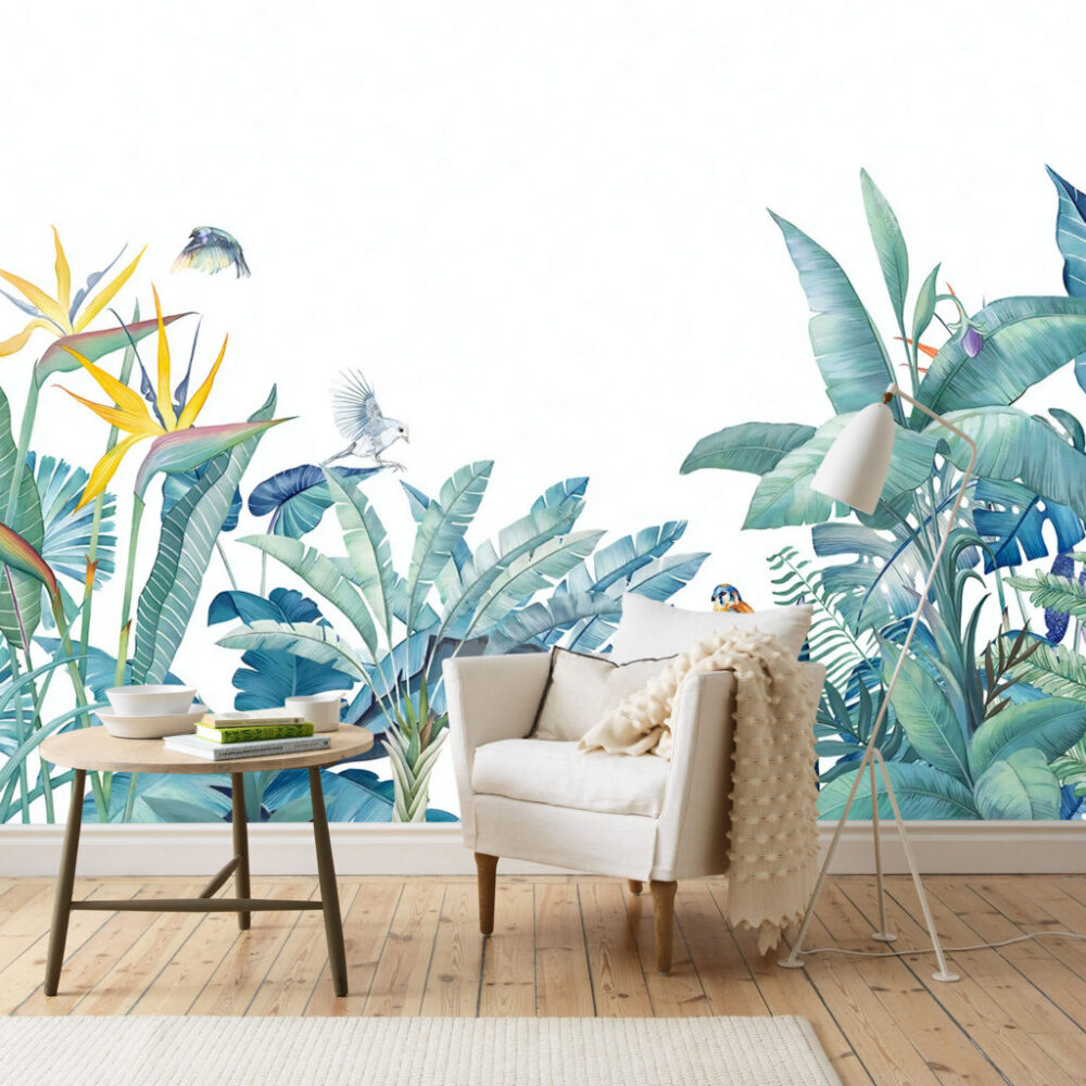 Ağaç Üzerindeki Kuşlar ve Çiçek Desenli Tropikal Duvar Kağıdı Duvar Kağıdı Ürün Bilgisi