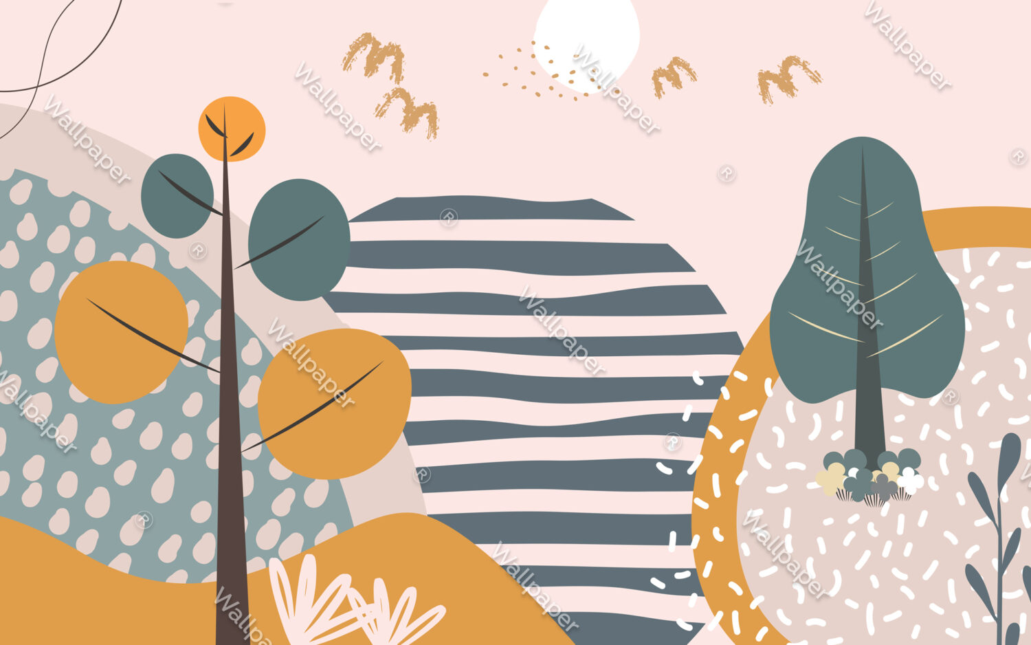 Ağaç Ve Tepe Manzaralı 3D Duvar Kağıdı Duvar Kağıdı Ürün Bilgisi