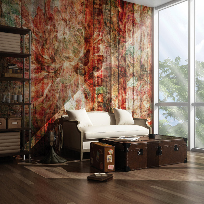 Ahşap Zeminli Pembe Renkli Çiçekler 3D Duvar Kağıdı Duvar Kağıdı Ürün Bilgisi