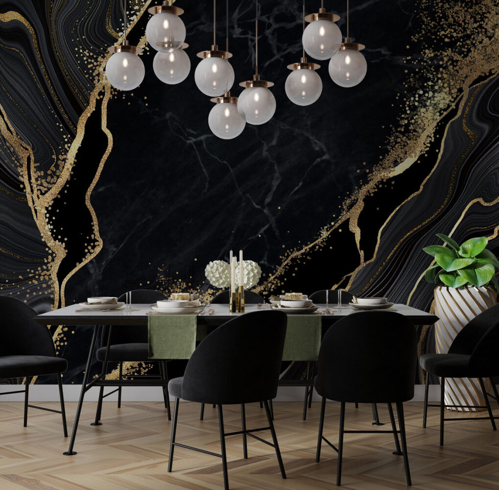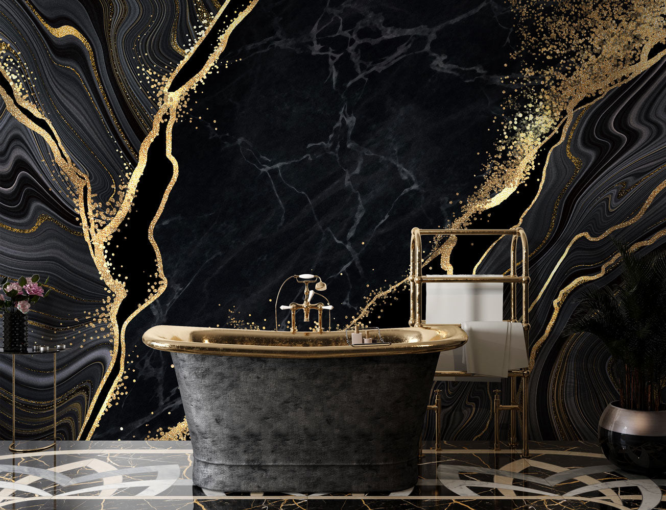 Altın Detaylı Siyah Mermer Deseni Duvar Kağıdı | Duvar Kağıdı Marketi üretimi, uygulanmasını isteyeceğiniz boyut ve konumuna uygun olarak talepleriniz doğrultusunda size özel imal edilir.