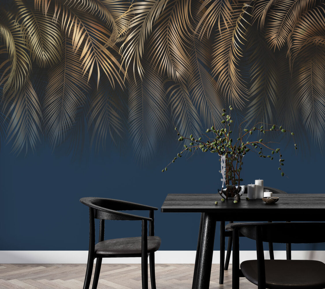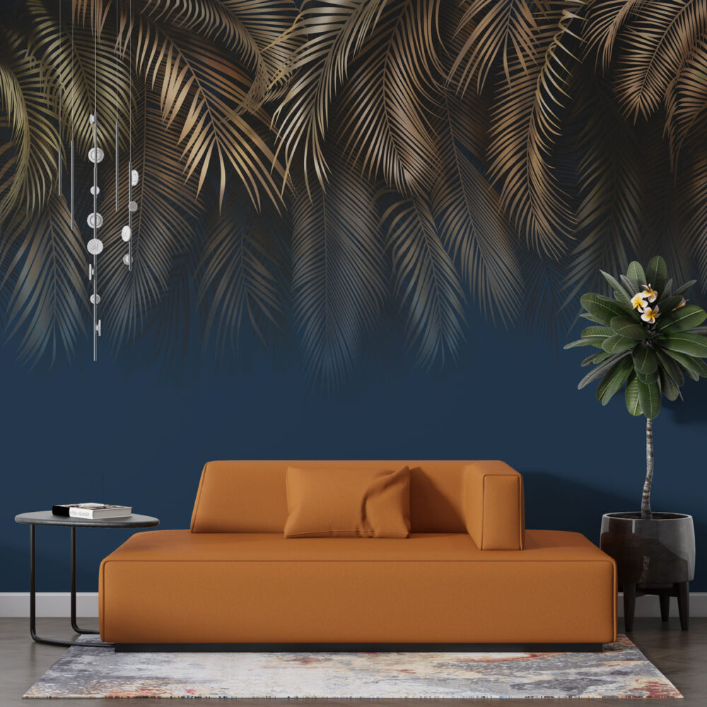 Altın Rengi Tropikal Yapraklar Duvar Kağıdı üretimi, uygulanmasını isteyeceğiniz boyut ve konumuna uygun olarak talepleriniz doğrultusunda size özel imal edilir.