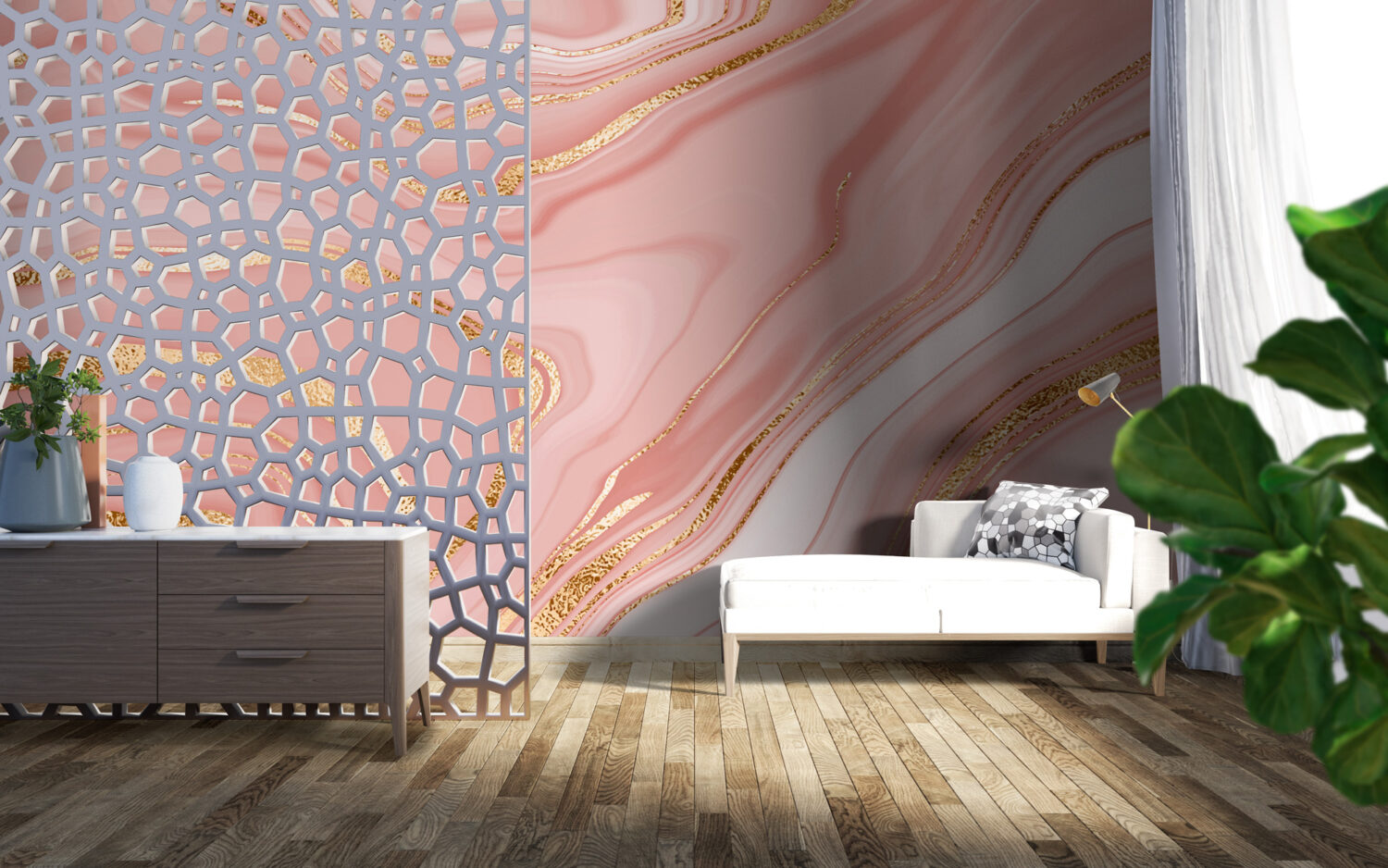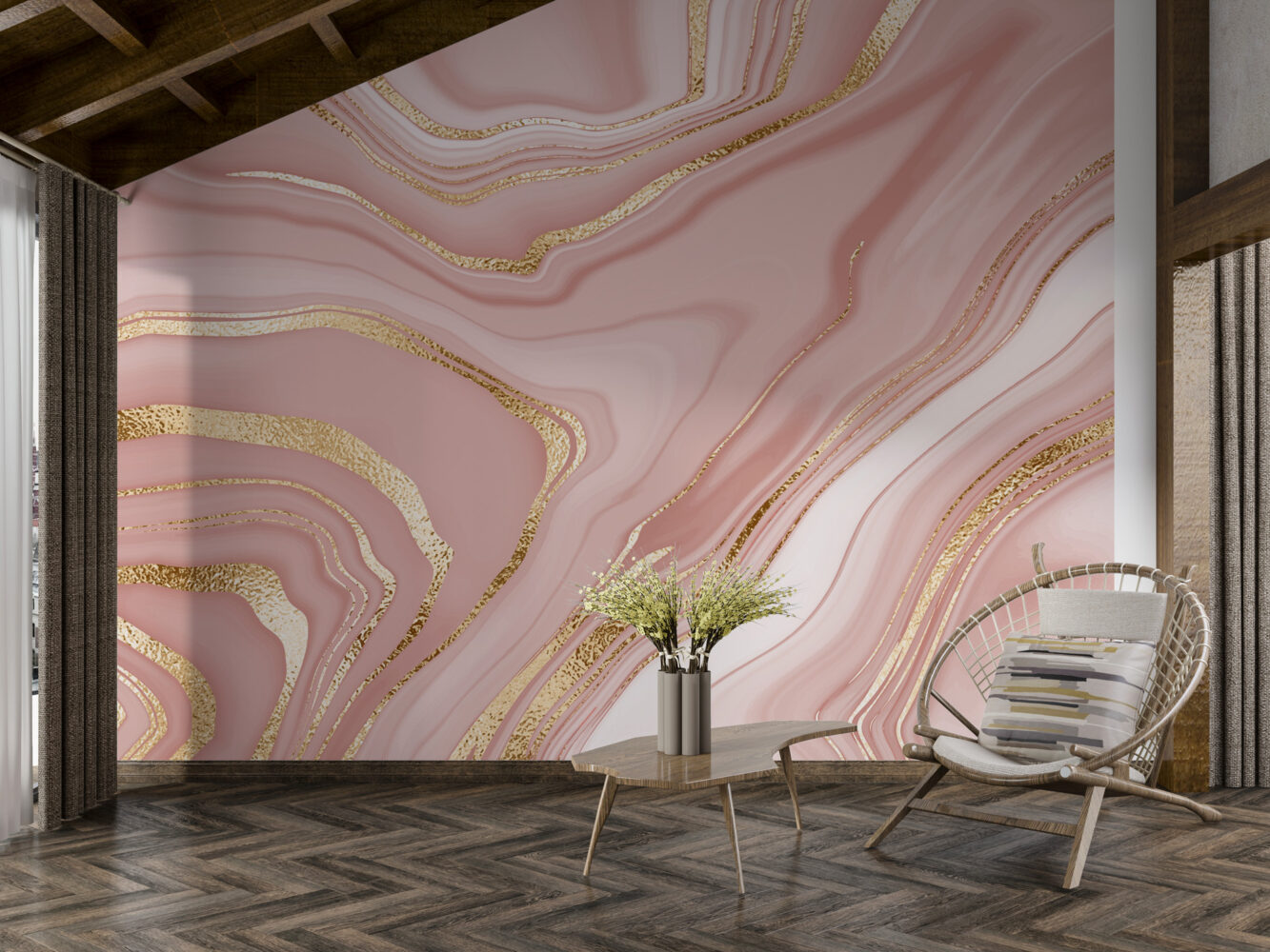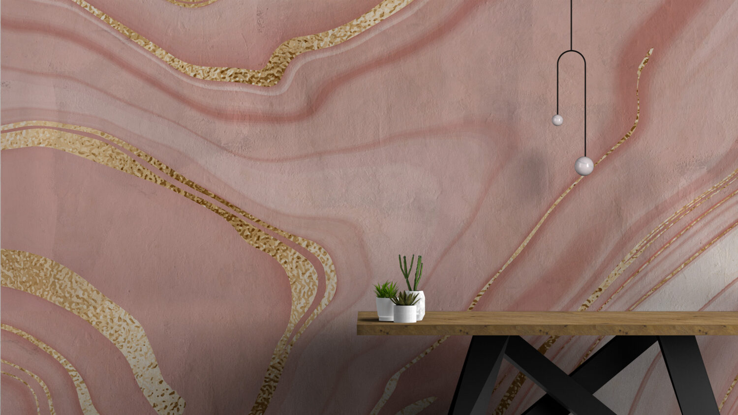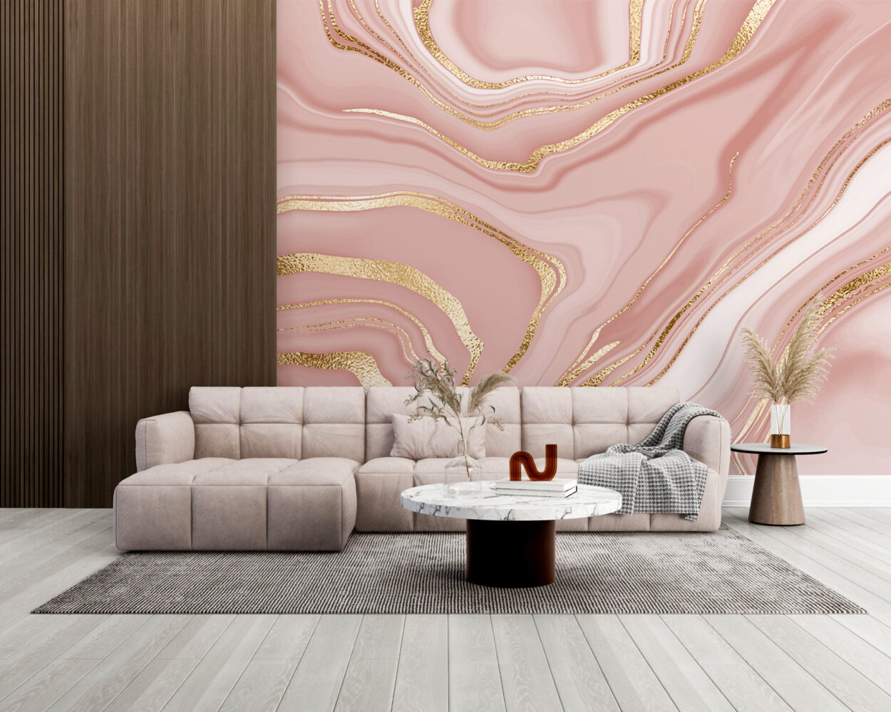 Altın Varaklı Pembe Mermer Duvar Kağıdı
