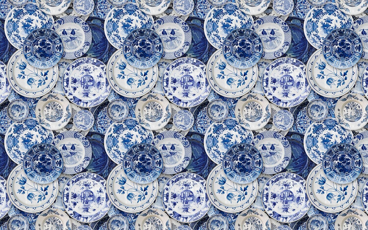 Antik Mavi Porselen Tabaklar Duvar Kağıdı