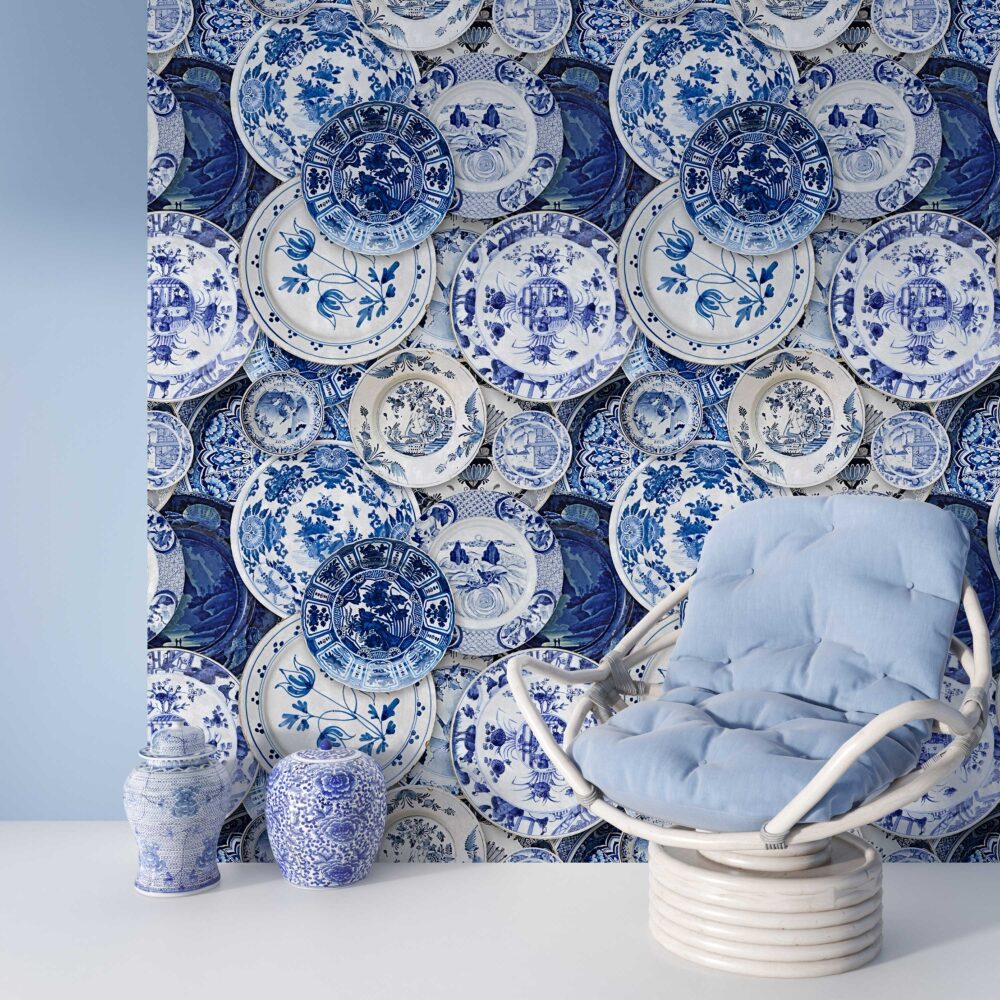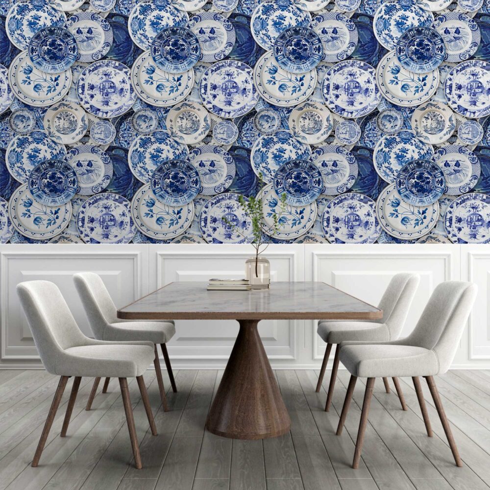 Antik Mavi Porselen Tabaklar Duvar Kağıdı Duvar Kağıdı Ürün Bilgisi